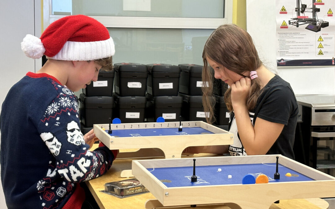 W grudniu mieliśmy przyjemność odwiedzić Szkołę Podstawową w Osielsku, gdzie rozpaliliśmy atmosferę intensywną rywalizacją w turnieju popularnej na całym świecie gry planszowej Klask! Zorganizowane rozgrywki przyciągnęły uczennice i uczniów, podzielonych na kategorie wiekowe, do pełnego emocji starcia o tytuł najlepszego gracza wśród wszystkich równoległych klas.